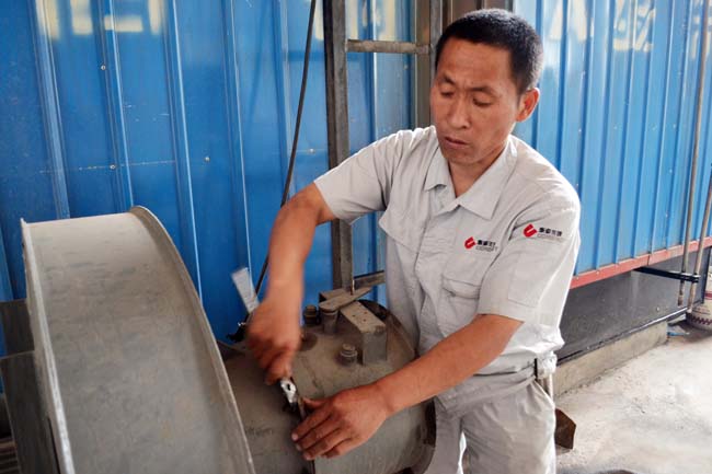 馮國(guó)成在給工友講解維修注意事項(xiàng) 在本職崗位上,他緊密聯(lián)系工作實(shí)際,堅(jiān)持刻苦鉆研業(yè)務(wù),攻克了生產(chǎn)中存在的許多技術(shù)難題。充分發(fā)揮了勞模的骨干和帶頭作用,支持和幫助其他工友提升業(yè)務(wù)素質(zhì)。瞧,他身邊這位全神貫注的年輕人,沒(méi)準(zhǔn)兒就是下屆的勞動(dòng)模范呢!